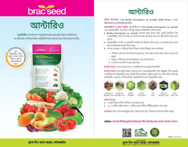 অ্যান্টারিও বাংলাদেশে অনুমোদনপ্রাপ্ত প্রথম BT জৈব বালাইনাশক যা শুয়োপোকা/শূককীট দমনের জন্য বিশেষভাবে তৈরি।